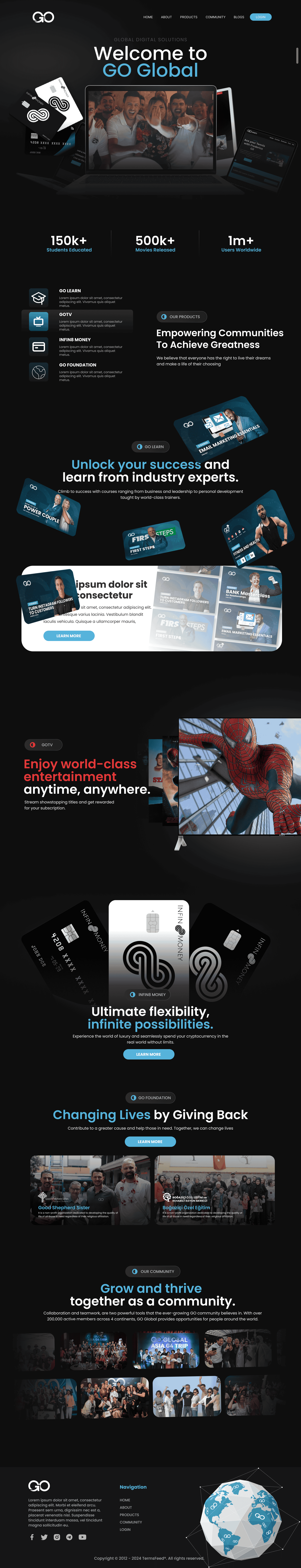 GO GLOBAL, a visionary company specializing in Global digital solutions, entrusted me with the task of creating a dynamic online presence to showcase their diverse range of products and services.