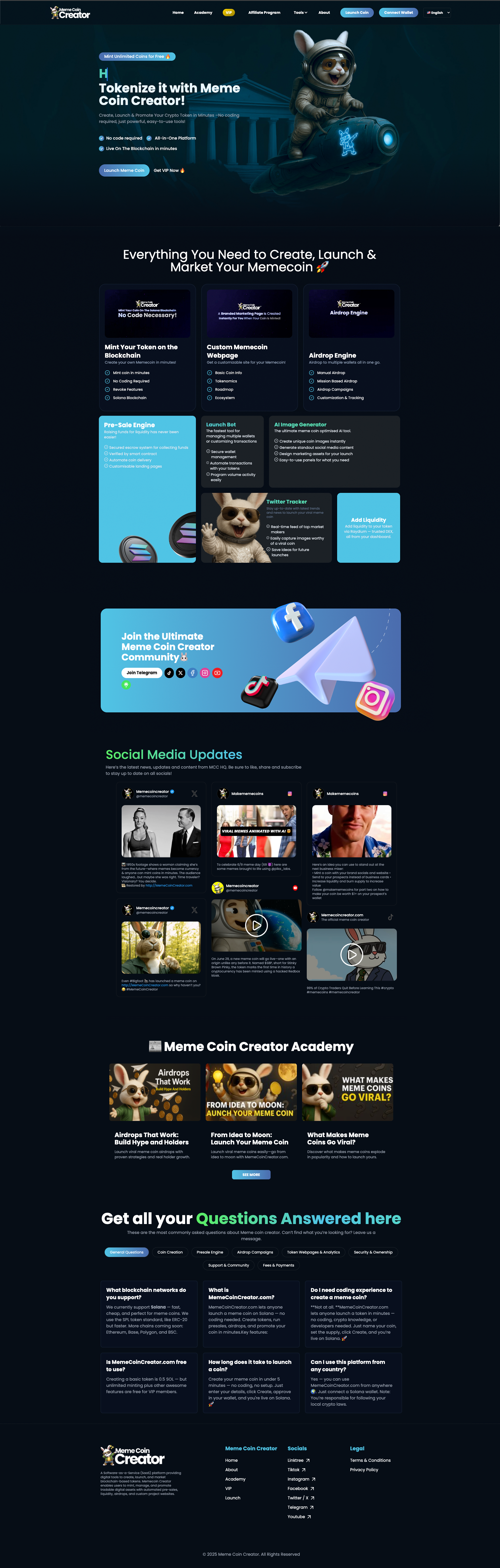 Solana Web3 Platform that provides services like SPL Token Miniting, Adding Liquidity, Performing Airdrops and more.